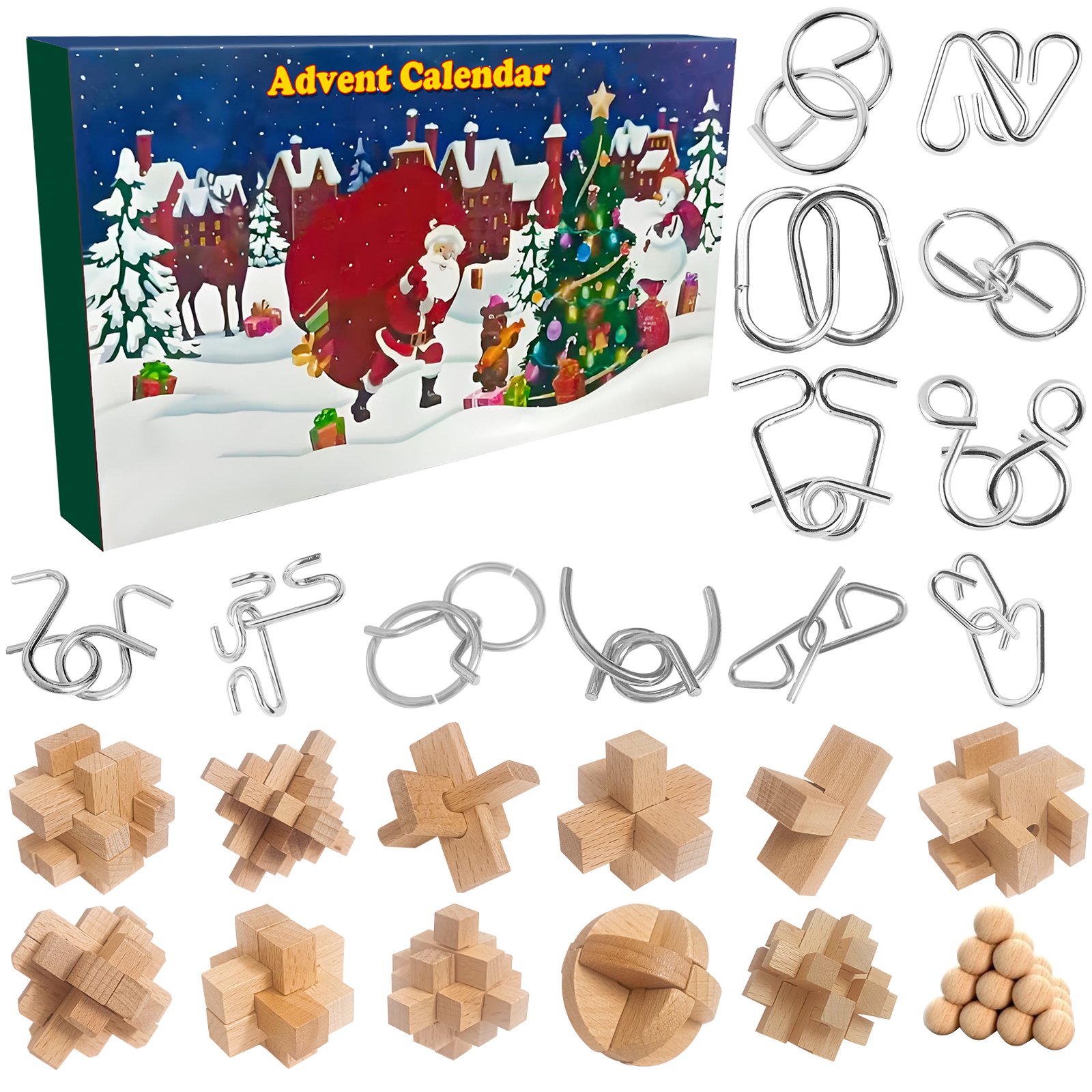 2026 Puzzle Advent Calendar,24 Days of Christmas Countdown,Brain Teasers&Logic Challenges for Kids,Wood&Metal Puzzle Set
